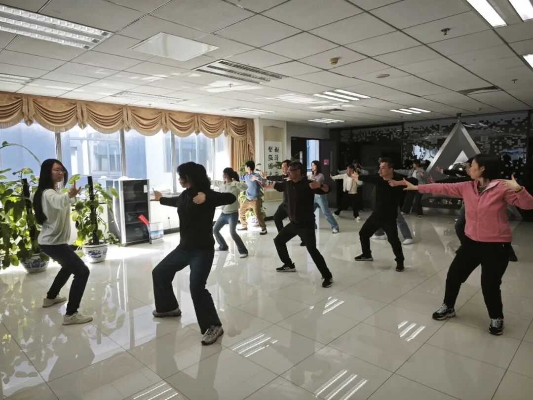 参观结束后,双方围绕健康生活主题展开深度交流。我院师生发挥专业优势,从体重管理科学方法、健康生活方式养成等方面进行系统讲解,现场演示办公室按摩保健手法,细致教学运动防护技巧,并针对研究院职工提出的个性化健康问题进行一对一解答。互动环节中,研究院职工与家属在学生党员的指导下,亲身体验八段锦传统养生功法,感受中华传统健身文化的独特魅力。