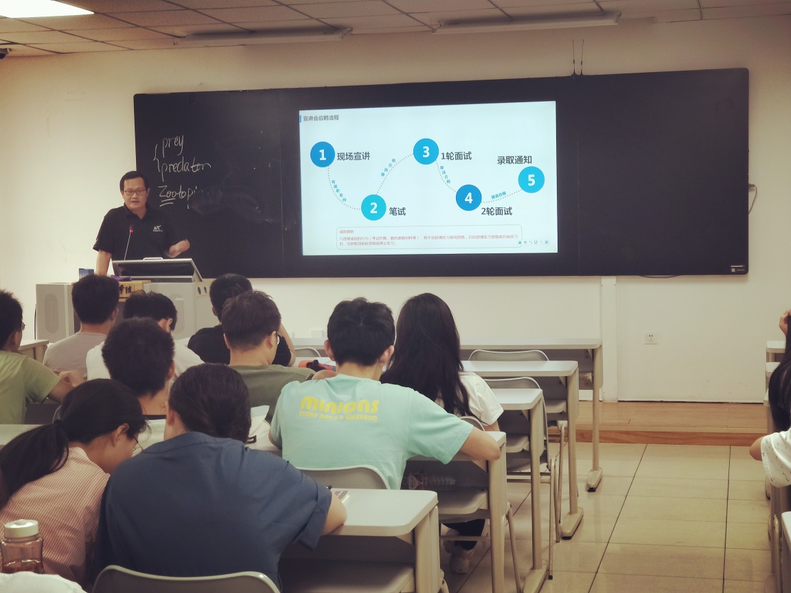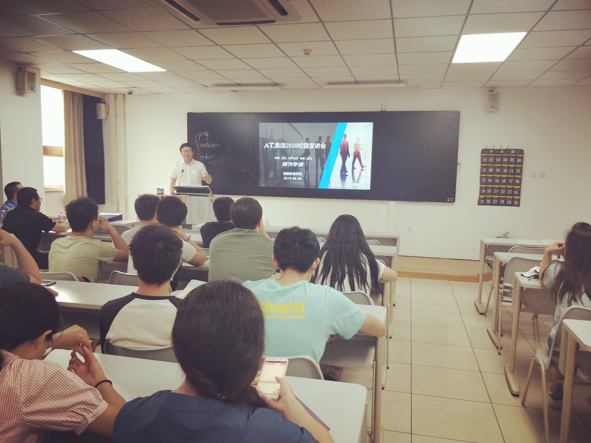 2019年6月5日,北京AT亚超力健康科技有限公司为91大赛 大三运动康复、运动人体科学专业的全体学生做了专业职业宣讲。AT公司的人事总监、技术总监、网络运营经理等5位负责人到会作了宣讲。AT公司属于健康产业服务类公司,旗下有运动康复诊所,接待了包括国内外不少知名运动员在内的运动损伤的康复治疗,有借助网络运营的运动健康指导、康复治疗平台服务于社会,有国外健康、康复设备的销售等,公司涉及面宽、服务面广,为91大赛 两个专业的学生提供了很好的实习、就业平台。宣讲完毕,还对该公司有兴趣的学生进行了综合素质的测试,便于他们将来吸纳人才。同学们兴致很高,彼此交流了很多信息,有十多位学生参加了测试。