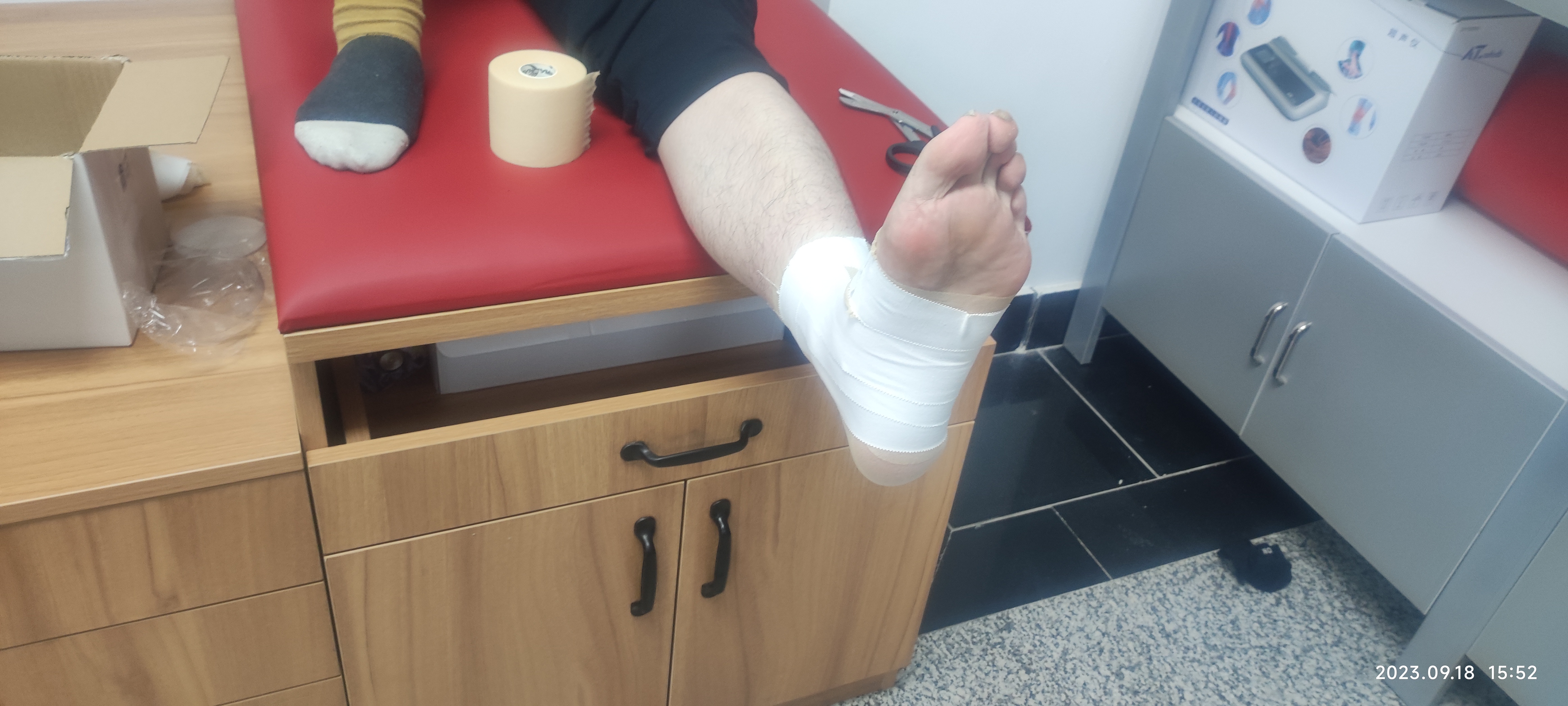 模拟演练的第二个环节是运动防护技能,包括每个参赛选手个人必选的项目――心肺复苏术和贴扎术,操作时间均为5分钟。这两个项目大家练习比较多,掌握熟练。杨少峰副院长指出了心肺复苏操作中大家存在的共性问题,如患者摆位、寻找按压位置、开放气道的方法的不规范,希望大家继续进行练习,把正确操作技术固化下来。
