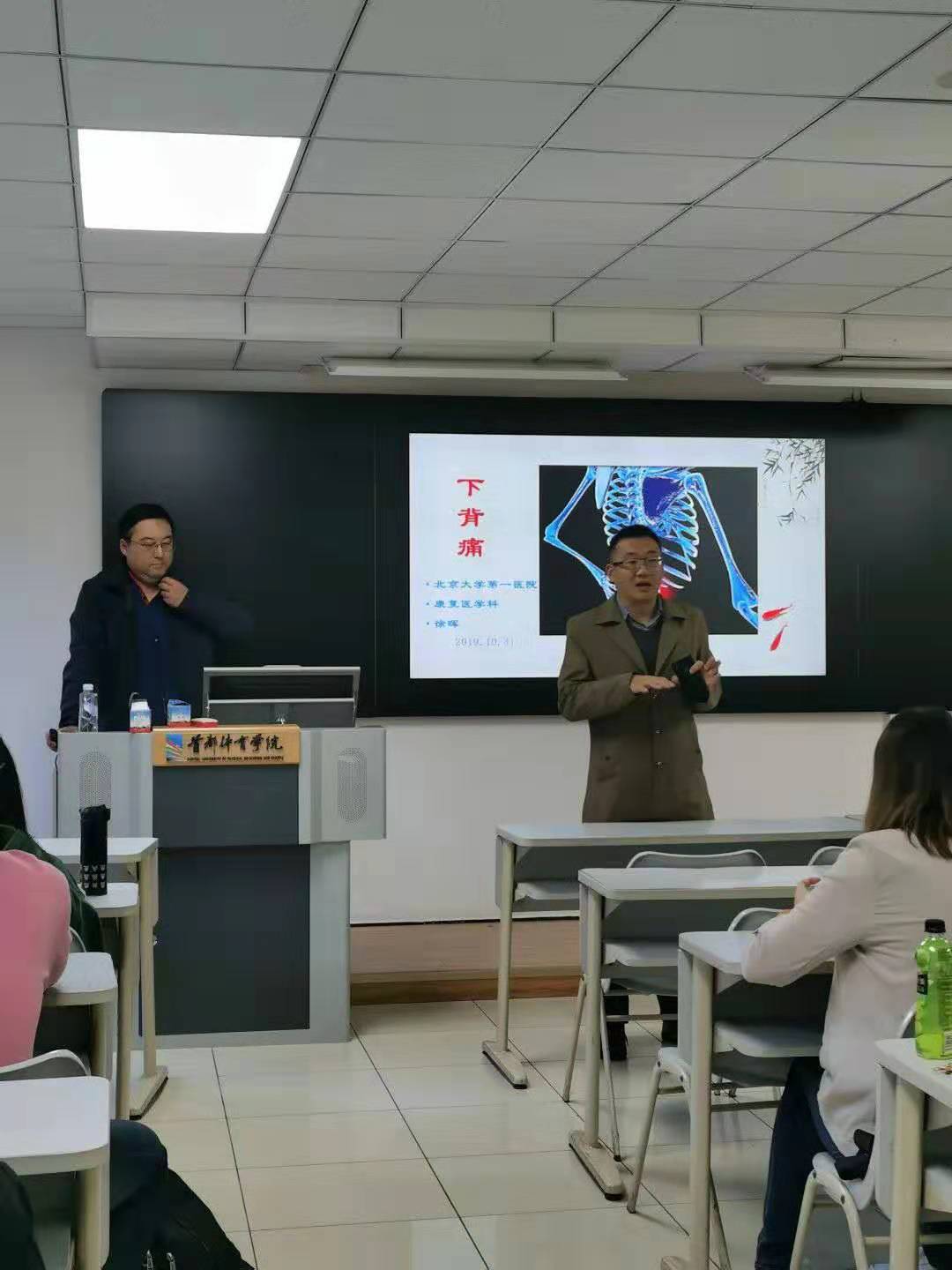 为进一步指导学院运动康复专业学生掌握更全面的专业知识,发挥优秀校友对学生成长成才的帮带作用,学院继续大力推进校友回声系列讲座工作,10月31日,学院邀请到北京大学第一医院康复医学科的徐晖老师,为同学们讲述《下背痛》课程,91大赛 党委书记杨少峰陪同出席,学院2017级运动康复专业学生参加此次讲座。