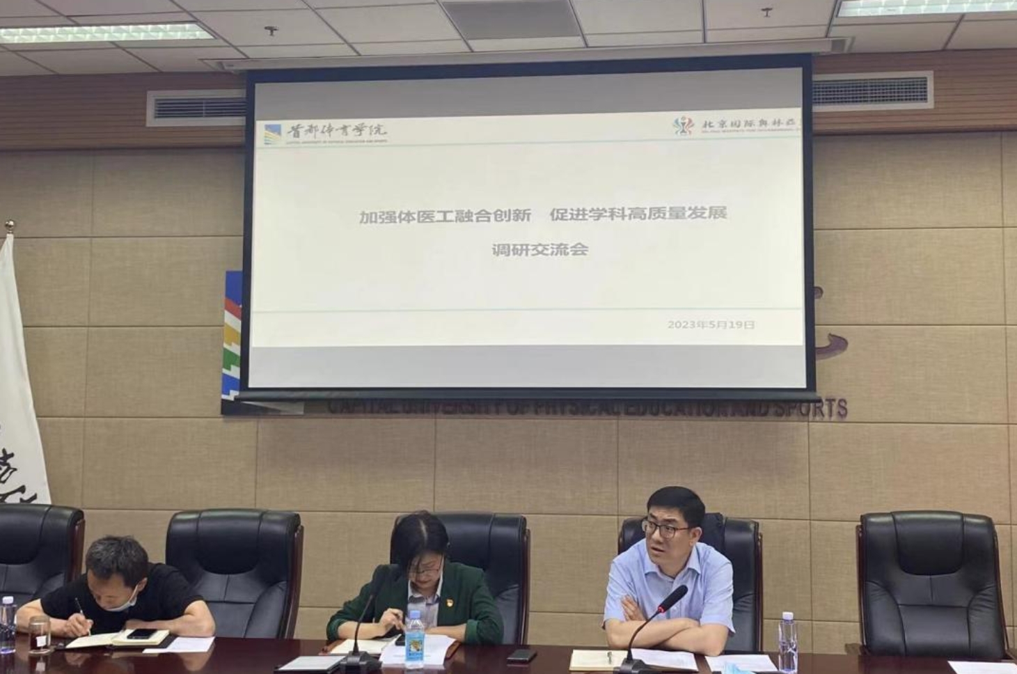 为深入贯彻落实党的二十大精神,积极响应学校“内涵建设与质量提升三年行动”要求,扎实推进体医工融合创新发展,5月19日上午,运动科学与健康学院举办“加强体医工融合创新 促进学科高质量发展”调研交流会。学院党委书记翟伯晨、院长贺刚,体育人工智能研究院院长霍波,体医融合创新中心党总支书记陈钧、主任张岩、副主任陈煜及各院骨干教师参会,会议由运动科学与健康学院院长贺刚主持。
