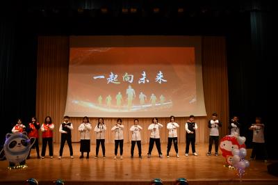 一玉口中国,一瓦顶成家!有国才有家,家和万事兴。那条腾飞的巨龙目光深邃地瞩目美好未来,由学院党委书记董志强老师和学院办公室徐晓红老师精彩演绎的《国家》使我们感受到了国的宏伟和家的温暖。学院朱正康老师、白爽老师、王丽老师和魏婉怡老师与学生们的互动合唱再次把气氛推向高潮。冬奥歌曲《燃烧的雪花》,冬奥主题朗诵《跨越时空走向你》展现了我院学生“同心筑梦向未来”的风貌,青春在燃烧,热情在流淌,梦想在翱翔。联欢晚会在《一起向未来》的师生合唱中落下帷幕。即将到来的2022已徐徐向我们展开了一张全民参与北京冬奥、共享奥运成果的伟大蓝图。作为冬奥志愿者的运康学子当要展现青年风采、贯彻奥林匹克价值观,为奥运铺就美丽中国底色。