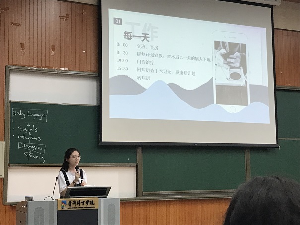 实习带队老师选取了10名表现优异的实习生代表上台进行汇报。每位同学都分别用5-8分钟的PPT将收获与感悟进行了汇报,汇报中学生既能做到高度概括,又能结合实例进行阐释。北医三院实习的张楠同学感悟到医院工作繁杂,事无巨细,除了专业的知识没有耐心和爱心是无法胜任的,感知“纸上得来终觉浅,绝知此事要躬行”,明白理论与实践结合的重要性,深知需提高自身素养,在以后的学习和实践中要不断完善自己各方面的能力。在慈爱嘉养老机构实习的董洁洁表示,整个实习过程经历了忐忑、无聊、欣慰、感动、豁然开朗、乐观、积极学习的心路历程,专业知识与技能得到了巩固与提升、体能康复的方法创新与实施以及综合能力的提升,最后是被照顾人的认可与感恩、慈爱嘉领导与老师的满意认可、甚至得到了相关政府部门的认可与鼓励。在中日医院实习的韩子轩同学用幽默的语言表达方式将实习中的辛劳、心酸、欣慰分享给听会者,引起了同学们的共鸣。在北京老年医院实习的黄玉洁同学表示,实习的8个月时间是自己人生中最宝贵的财富之一。总之,学生们都表示半年多的实习生活,他们不管是在专业知识、专业技能方面还是人际交往、为人处世方面都收获颇丰,并表达了对学院、实习带队老师、实习单位老师们的衷心感谢!