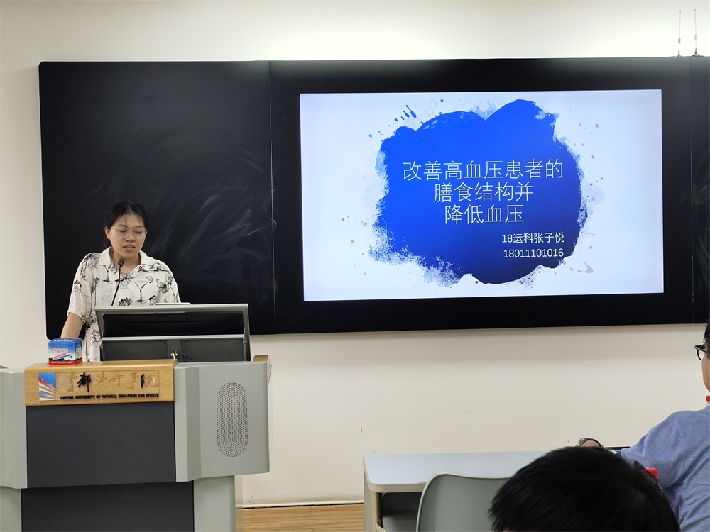 最后是张子悦同学汇报的项目《改善高血压患者的膳食结构并降低血压》。她通过对目标人群平时摄入的速食食物和肉类以及运动情况的动态观察和分析,探讨了如何通过改善高血压患者的膳食结构来降低血压的可行性。