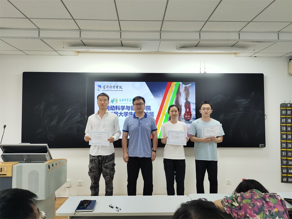 为鼓励学生积极参与科研立项和加强对专业发展的思考,强化专业理论知识在实践中的应用,培养科学严谨的作风和创新思维意识,以及锻炼学生的综合能力,6月24日下午,运动科学与健康学院组织举办了第十六届“大学生科技论坛”。学院副院长杨少峰、副书记董静、办公室魏婉怡老师出席论坛汇报会,教务处副处长项江老师、生理生化教研室卜淑敏教授、解剖生力教研室主任戴昕老师应邀担任评委。