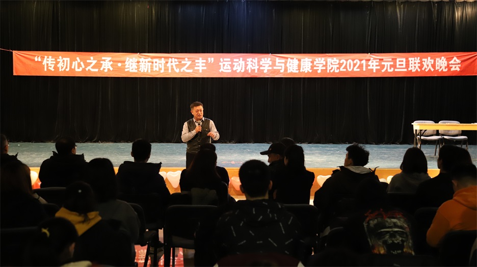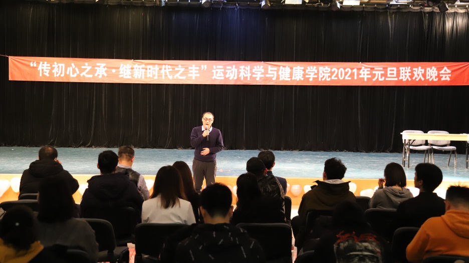 回首2020,从全国一心抗击疫情到十九届五中全会的胜利召开,从停课不停学的居家线上学习到常态化疫情防控下的新风行动,在党的坚强领导下,我们携手走过这不平凡的年份,不寻常的学年。为致敬抗疫英雄,喜迎中国共产党建党100周年,2020年12月9日晚6点半,运动科学与健康学院组织召开主题为“传初心之承·继新时代之丰”的师生元旦联欢,党委学生工作部副部长董建锋、校团委书记靳卓莅临指导,学院院长周军、党委书记李芾、副院长杨少峰、二级学院团总支书记、学院教师、辅导员出席联欢晚会。