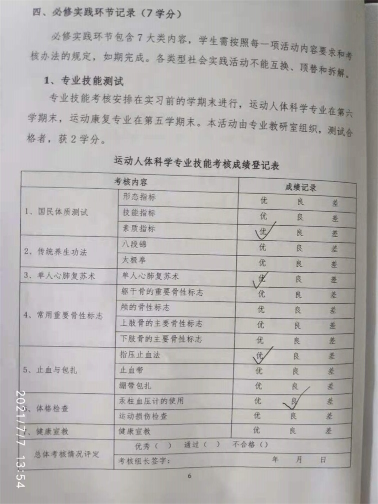 为开展好此项工作,学院将“学生专业技能测试”纳入“第二课堂和社会实践”的必修环节,制作了专门的记录手册,同时根据该年级所使用的本科人才培养方案,从专业核心课程中提取出本专业的基本专业技能,形成了相关基本要求和规范。